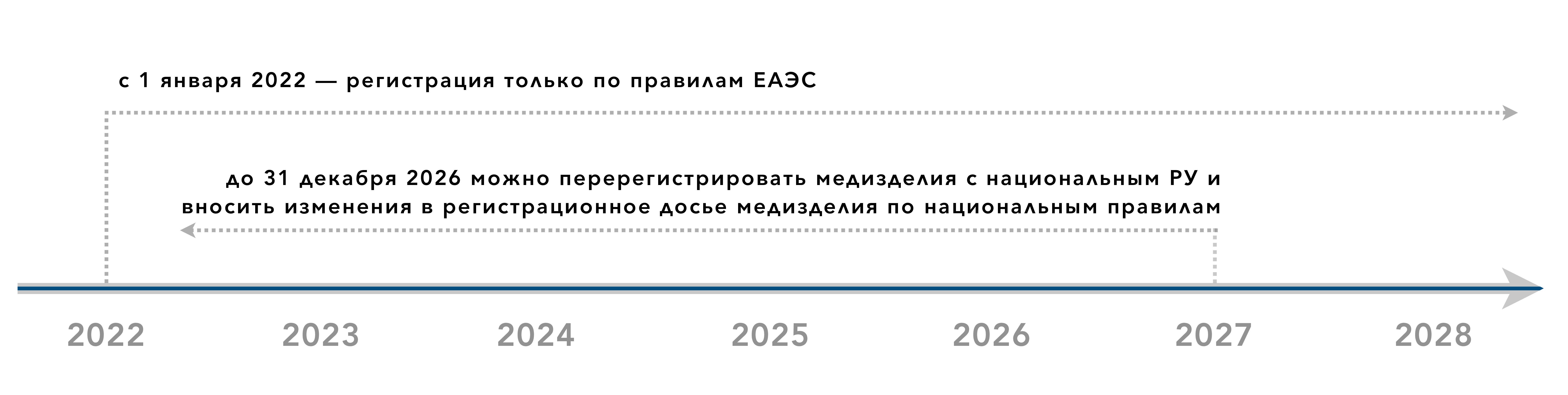 Во-первых, его точно не касается следующий абзац из того же распоряжения (“Медицинское изделие, зарегистрированное по законодательству государства-члена, <…> может быть перерегистрировано до 31 декабря 2026 года”): в России — в отличие от, например, Беларуси — не существует процедуры перерегистрации. Впрочем, на эту дату придется ориентироваться в случае, если производитель будет вносить изменения в регистрационные документы: это можно будет сделать только до 31 декабря 2026.